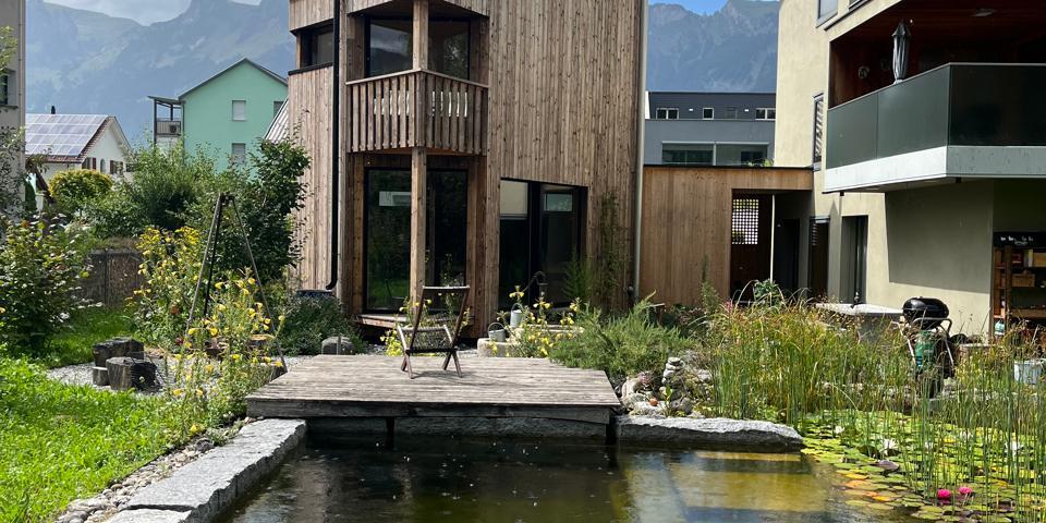 Das Gästehaus von Tania Oehri liegt direkt am naturnahen Garten.