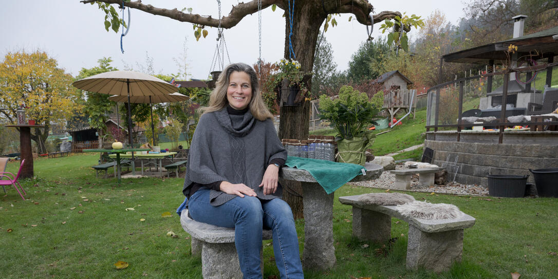 Erfahrung als Kindergärtnerin. In ihren weitläufigen Garten singt und tanzt sie mit den Kindern – lässt sie aber auch spielen und dabei erste soziale Erfahrungen sammeln.