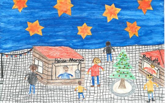 Ihr seid kreativ, bis 13 Jahre alt und liebt die schönste Zeit im Jahr? Dann los: Schnappt euch Stifte, Farben und Bastelmaterial! Noch keine Inspiration? Kein Problem. Vielleicht schwebt ein Nikolaus im Heissluftballon über die Dächer oder ein Schneemann trägt ein besonders modisches Winteroutfit. Denkbar ist auch ein Weihnachtsmarkt auf dem Mond, ein Baum voller Disco-Kugeln oder ein Pinguin auf Schlittschuhen. Ebenso könnten Maria und Josef in der Krippe, das Weihnachtsfest mit der Familie oder eine Winterlandschaft unter tausend funkelnden Sternen dargestellt werden.