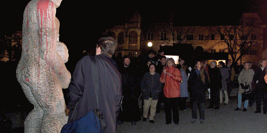 Anlässlich des Gedenkanlasses zu 10 Jahren Platzspitz-Schliessung wurde die Skulptur «Fixer» von Lilian Hasler am 4. Februar 2002 erneut vor dem Rondell auf dem Platzspitz aufgestellt.