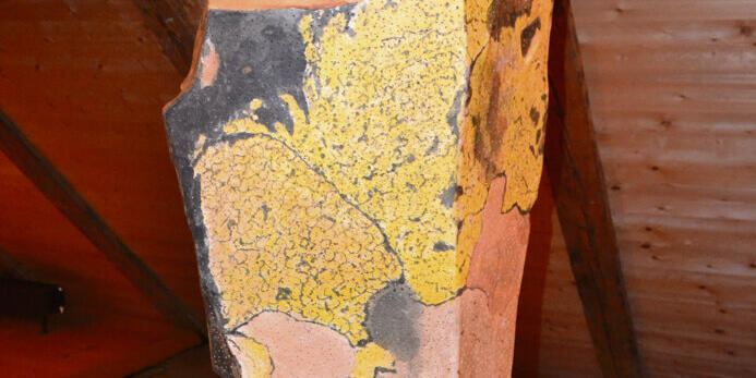 Exponate der Ausstellung im Küefer-Martis-Huus: Stein aus einem Bach in Graubünden, Steinbild aus Carschenna und ein Stein aus der Silvretta mit Flechten (v. l.).