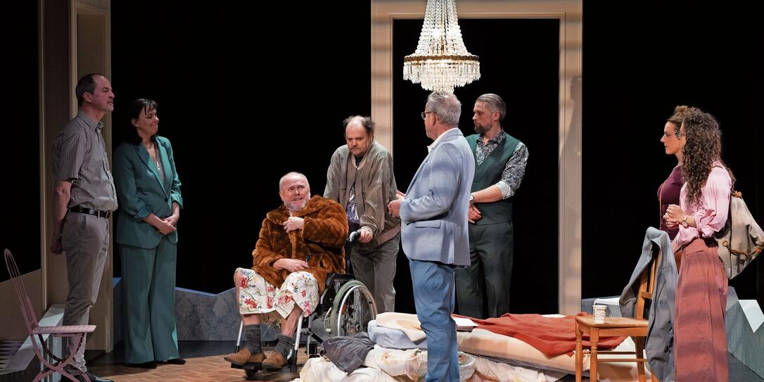 Das achtköpfige Ensemble überzeugt mit präzisem Zusammenspiel in der unterhaltsamen wie nachdenklichen Komödie.