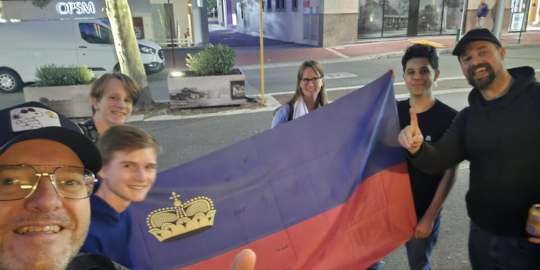 Nach dem Konzert wurde die Band am Bühnenausgang von ein paar jungen Liechtenstein-Fans aus Perth überrascht, die ihre Fahne signiert haben wollten.