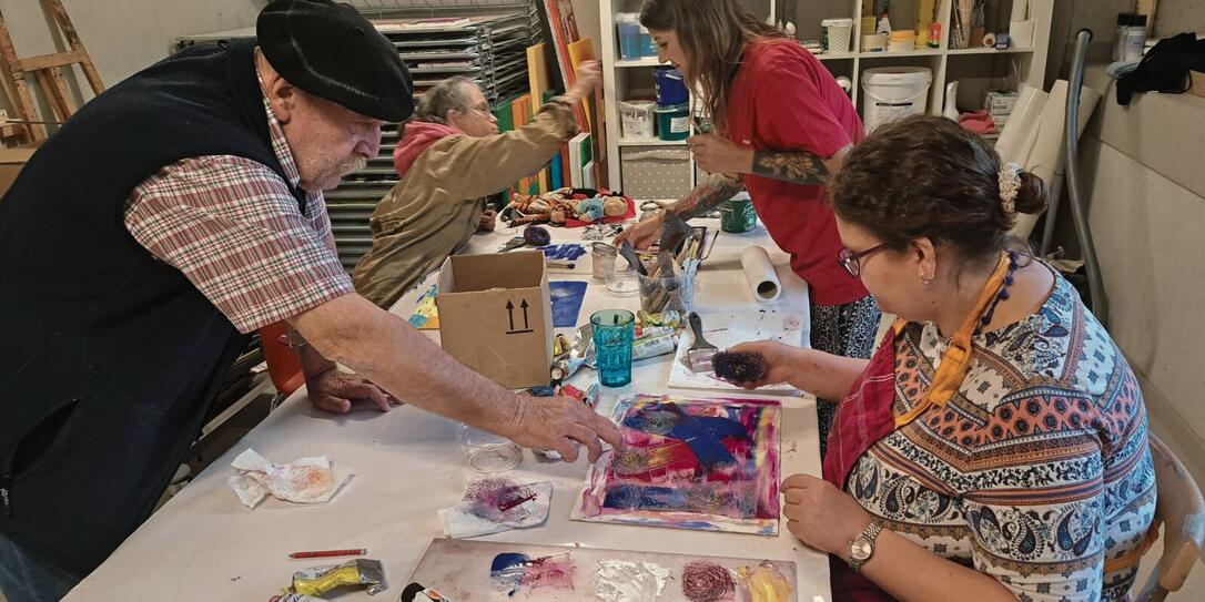 Hugo Marxer gab den HPZ-Künstlerinnen Tipps und vermittelte den Leiterinnen Maltechniken.
