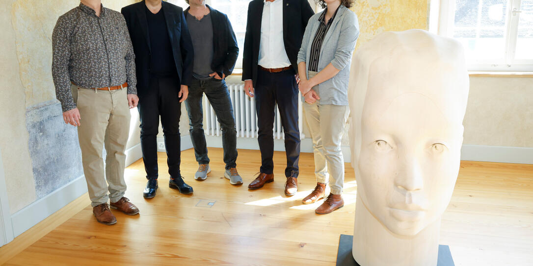 Markus Burgmeier, Patrick Kaufmann, Michael Tolloy, Vorsteher Karl Malin und Sara Gianera (v. l.).