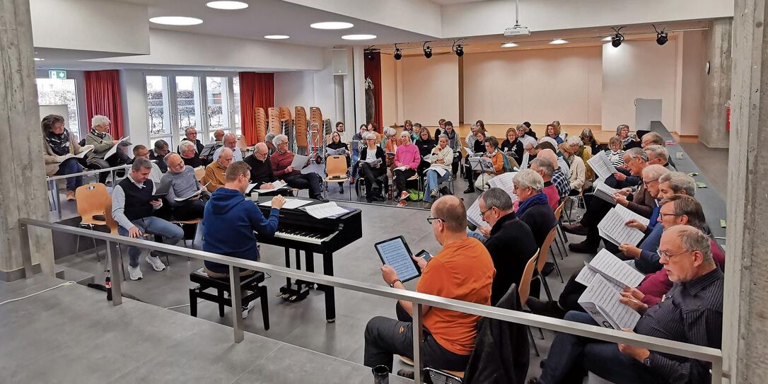 Die Sängerinnen und Sänger proben fleissig für die bevorstehenden Konzerte.