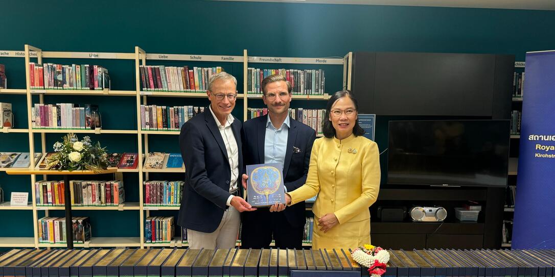 Am 7. Oktober übergab die thailändische Botschafterin Pannabha Chandraramya eine besondere Schenkung der World Tipitaka Foundation an die Landesbibliothek: 80 Bände umfasst das Werk World Tipitaka Saj-jhā-ya Phonetic Recitation. «Dies war ein wichtiger symbolischer Akt der kulturellen Verbundenheit zwischen Thailand und Liechtenstein», schreibt die Landesbibliothek in der Medienmitteilung. Die Tipitaka ist die in der Sprache Pali verfasste älteste zusammenhängend überlieferte Sammlung von Lehrreden des Buddha Siddhartha Gautama.