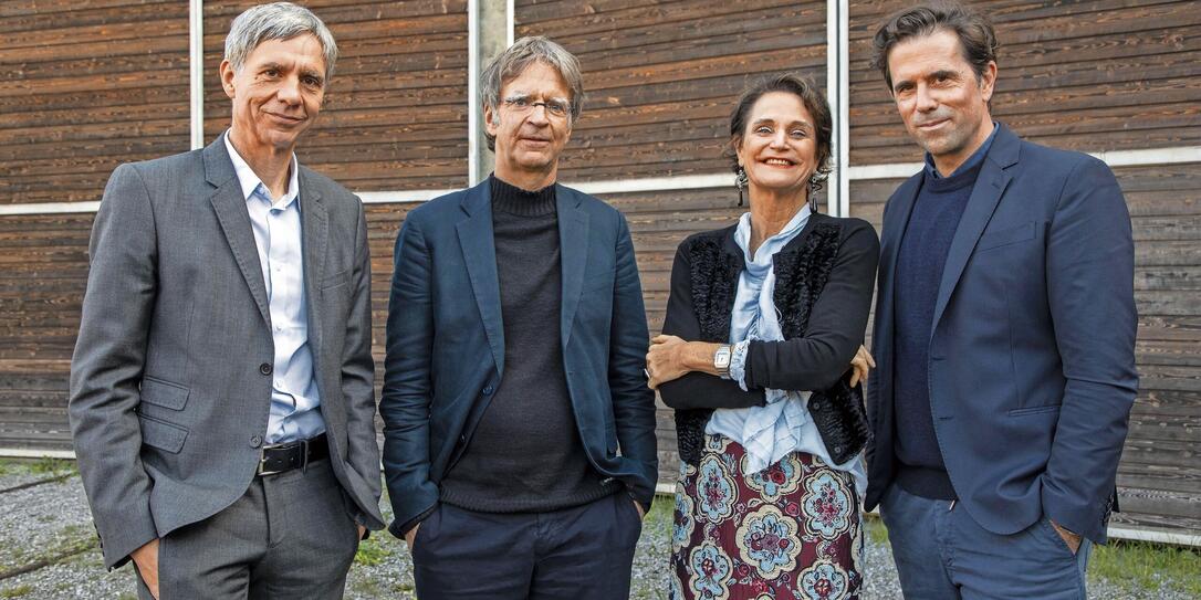 Thomas Trummer, Direktor Kunsthaus Bregenz, Stephan Kunz, Direktor Bündner Kunstmuseum Chur, Letizia Ragaglia, Direktorin Kunstmuseum Liechtenstein, und Gianni Jetzer, Direktor Kunstmuseum St. Gallen (v. l.), stellten die gemeinsame Plattform «Cloud Castle» vor.