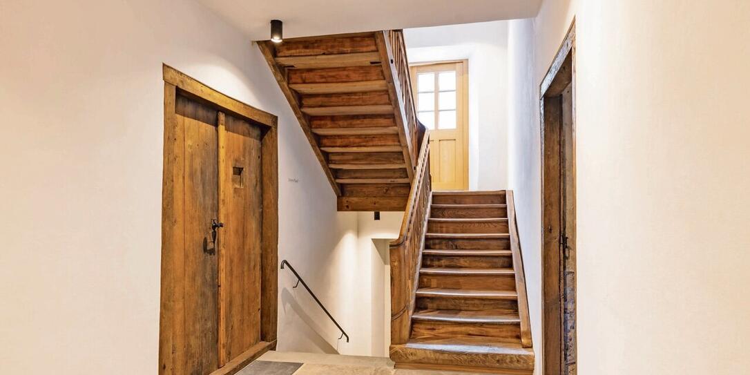 Im Treppenhaus treffen Alt und Neu aufeinander.