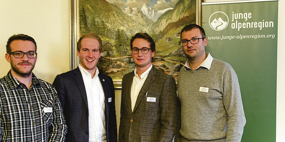 Diskutierten über die Flüchtlingskrise: Die Vertreter der Jugendunion Martin Oehri, Präsident Yannick Zurflüh, Liechtensteins JA-Vorstandsmitglied Stephan Agnolazza und JA-Präsident Stefan Franceschini.
