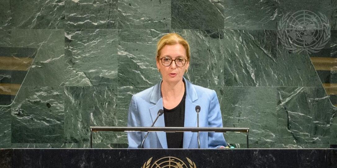 Regierungschefin-Stellvertreterin Sabine Monauni bei ihrer Ansprache vor der UNO-Generalversammlung.