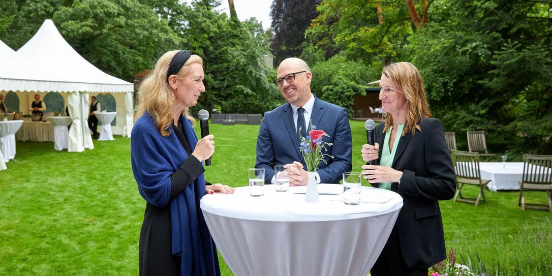 Fragerunde mit Regierungschef-Stellvertreterin Sabine Monauni und Regierungschef Daniel Risch unter der Leitung von Botschafterin Isabel Frommelt-Gottschald.