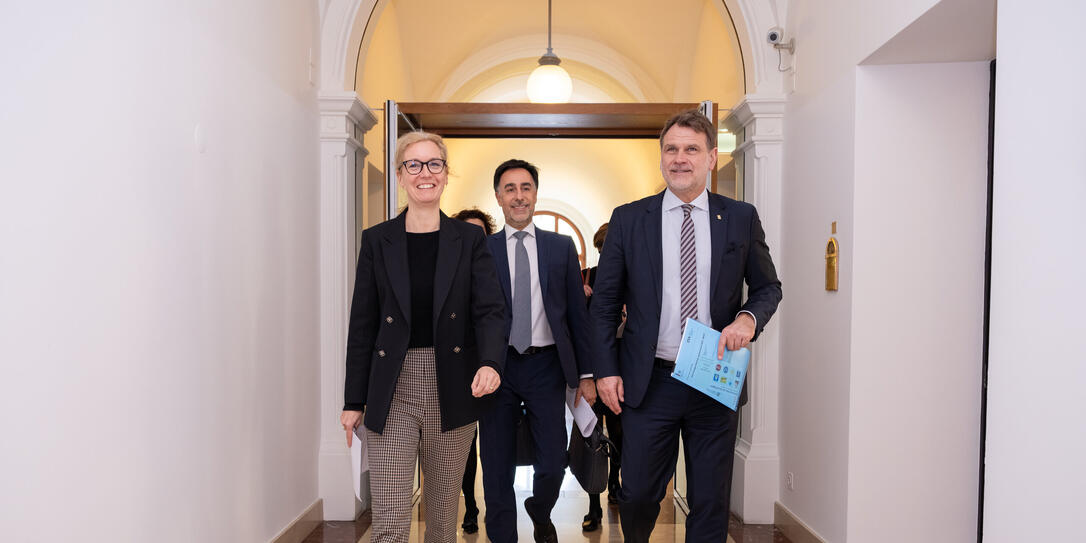 Regierungschef-Stellvertreterin Sabine Monauni, Stefan Barriga und Árni Páll Árnason.