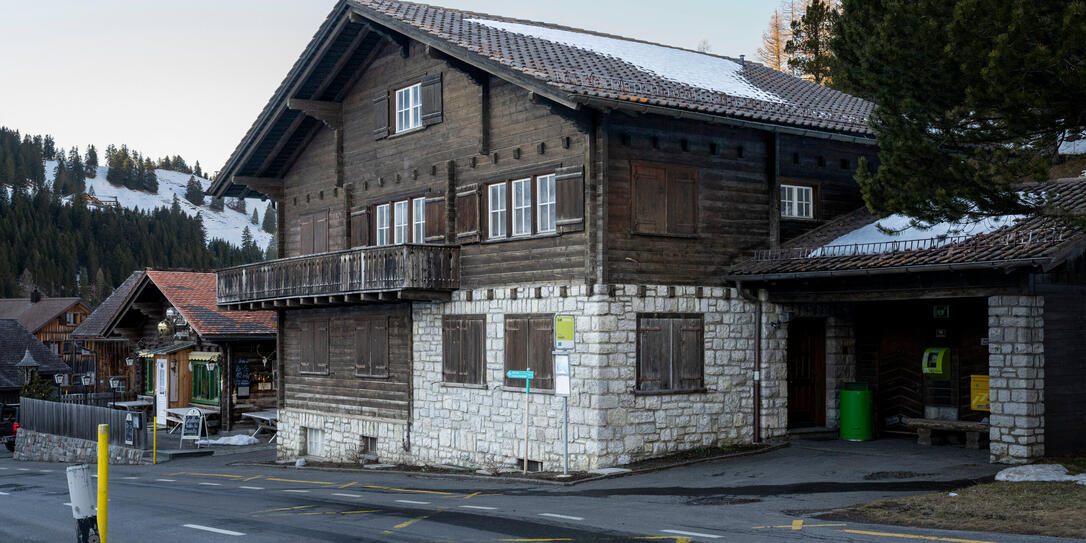 Das Zollhaus in Steg befindet sich direkt an der Bushaltestelle.