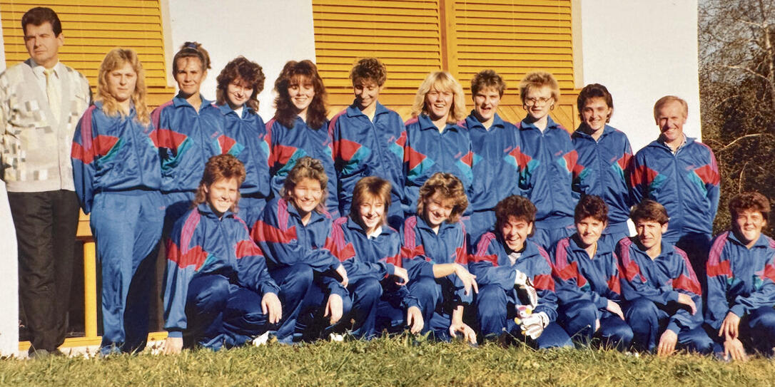 Lang ist's her – die Frisuren und knalligen Trainingsanzüge zeugen davon. Das Bild zeigt die Frauen-Mannschaft des FC Ruggell im Jahre 1988 mit Trainer Oskar Büchel (oben, r.).