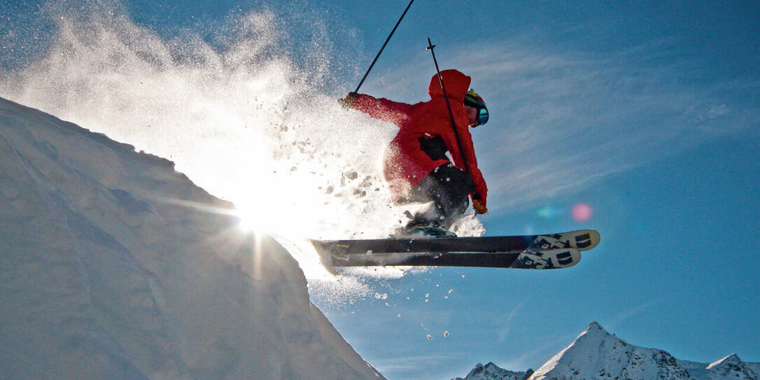Freeride bedeutet freies Fahren ausserhalb der Pisten, oft im Pulver oder auf steilen Hängen – nur für geübte Skifahrer.