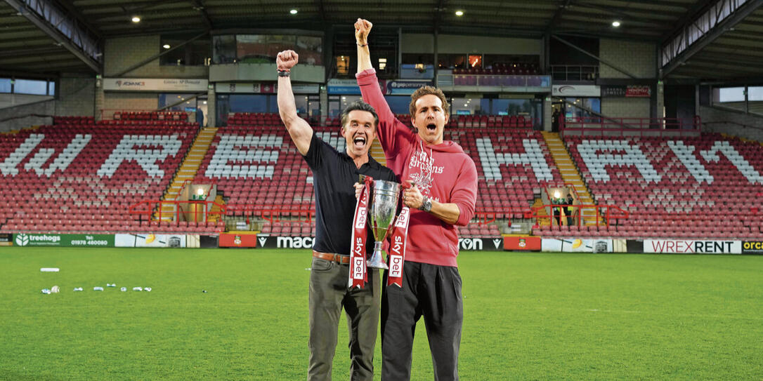 Rob McElhenney (l.) und Ryan Reynolds bejubeln den Aufstieg in die Championship.