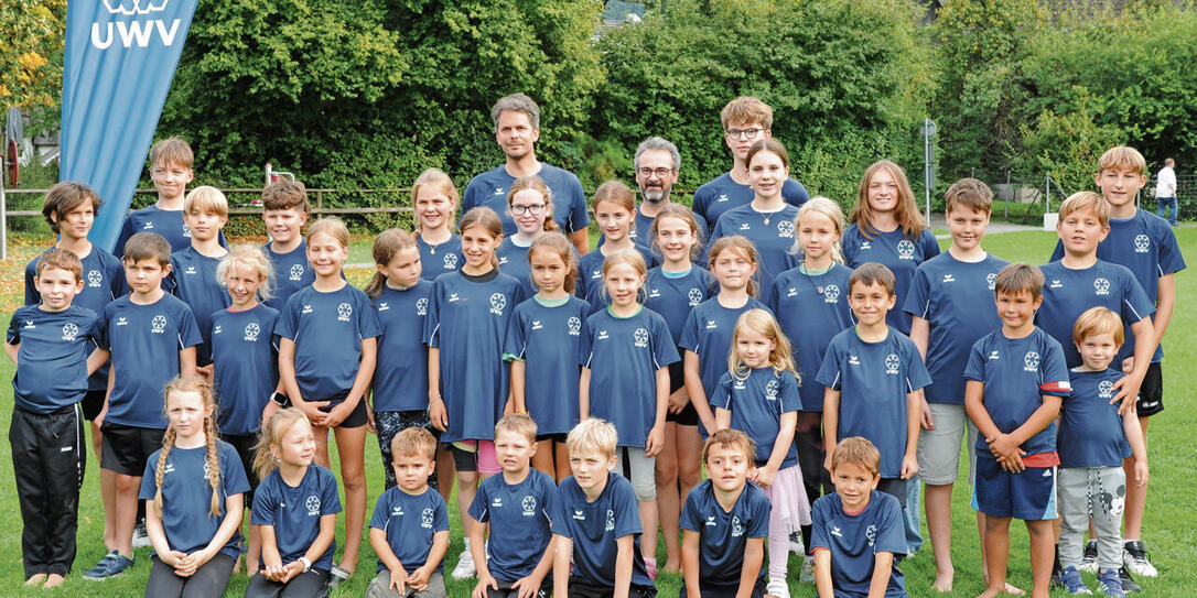 Die zahlreichen UWV-Kinder präsentierten die neu gestalteten Shirts und Fahnen beim Festakt.