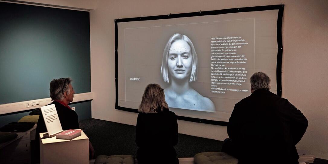 Die 58 Porträts werden in einer Diashow gezeigt und beinhalten teils persönliche Geschichten zu den ausgewählten Begriffen.