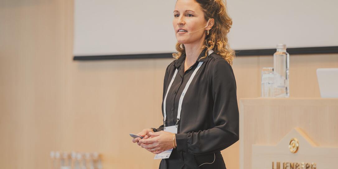 Ornella Weideli arbeitet auch als Speakerin, hier bei der Konferenz Grenzdenken am Bodensee.