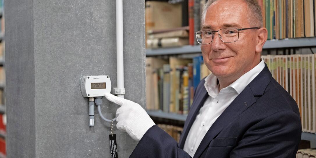Bibliothekar >,  im Almat in Schaanwald Mauren, industrie, Bücher, Archiv, Archivierung, Buch, Bibliotheke, _ Foto: Nils Vollmar