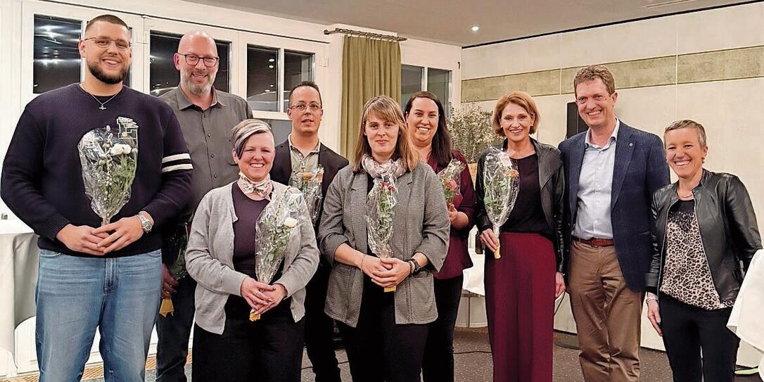 Ein besonderer Höhepunkt des Abends war die Ehrung mehrerer langjähriger Mitarbeitenden, die im Jahr 2025 sowie Anfang 2026 ein Jubiläum bei Delta Möbel feiern durften. Für ihre Treue und ihren grossen Einsatz für Delta Möbel wurden geehrt: v.l.n.r Adnan Muranovic (5 Jahre), Martin Uhl (10 Jahre), Andrea Bartholet (30 Jahre), Benaja Giaimo (5 Jahre), Jasmin Eggenberger (20 Jahre), Stefanie Spescha (20 Jahre) sowie Jris Bärtsch (25 Jahre).