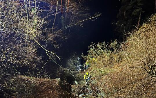 Diese Nacht kam es zu einem schweren Unfall in Triesenberg. Eine Lenkerin stürzte mit ihrem Auto 50 Meter in ein Bachbett hinab.