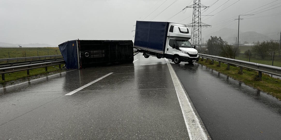 Anhänger kippt wegen einer Windböe auf der Autobahn bei Rüthi