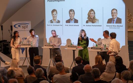 Europapolitik im St.Galler Pfalzkeller: An der Podiumsdiskussion trafen HSG-Expertinnen und -Experten auf den St.Galler Nationalrat Roland Rino Büchel. Alle waren sich einig, dass Donald Trump die Aussenpolitik auf den Kopf stellt. Wie die Schweiz damit umgehen soll, war aber umstritten.