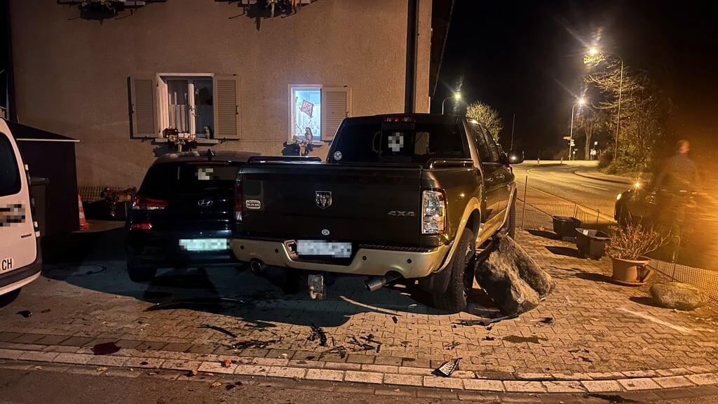 Ein 32-jähriger Mann fuhr um 1 Uhr nachts mit seinem Auto auf der Rheinstrasse von Lustenau in Richtung Widnau. Höhe Verzweigung Rheinstrasse / Wuhrstrasse verlor er die Kontrolle über sein Auto und prallte in einen Begrenzungsstein sowie in ein parkiertes Auto. Durch die Wucht des Aufpralls wurde das parkierte Auto in ein weiteres parkiertes Auto geschoben.