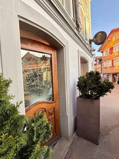 Filmreife Szene in Appenzell: In der Nacht auf Freitag haben Unbekannte mit einem Auto die Eingangstüre des Goldschmiedegeschäfts Fuster an der Poststrasse in Appenzell durchbrochen. Dort entwendeten sie in kurzer Zeit eine grosse Menge Schmuck. Zuvor hatten sie das Fahrzeug und Bargeld bei einem Holzbaubetrieb in Eggerstanden gestohlen. Der entstandene Sachschaden an der Eingangstüre und im Ladeninneren ist erheblich. Die Kantonspolizei Appenzell Innerrhoden bittet um Hinweise. Bereits vor drei Wochen hatten Unbekannte versucht, in dasselbe Geschäft einzubrechen.
