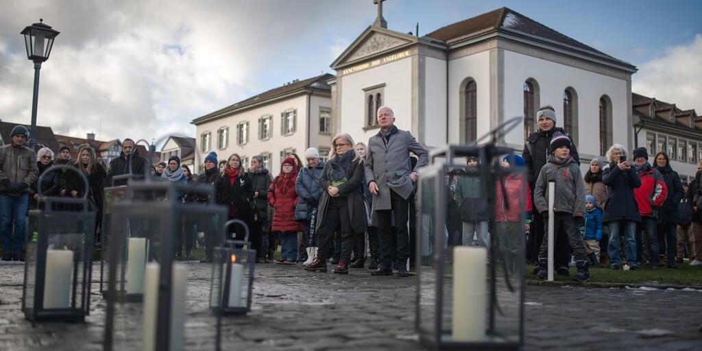 In der Mitte des Klosterplatzes in St.Gallen brennen sechs Kerzen. Immer mehr Menschen strömen über die fünf sternförmigen Wege auf den Klosterplatz. Sie versammeln sich im Kreis um dessen Mitte. Um kurz vor 14 Uhr richten sich Bischof Grögli und die reformierte Pfarrerin Kathrin Bolt an die unzähligen Versammelten: «Wir stehen zusammen – und verbinden uns mit den Opfern, den Hinterbliebenen und den Helferinnen und Helfern der schrecklichen Brandkatastrophe von Crans-Montana», sagt Bolt.