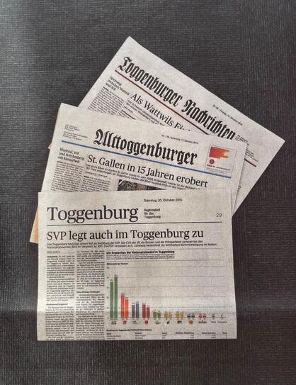 22. Oktober: Wattwil. Die heimische Medienwelt ist in Bewegung: Das «Toggenburger Tagblatt» verbindet ab nächstem Jahr den «Alttoggenburger» und die «Toggenburger Nachrichten» zu einer einzigen, starken Regionalzeitung für das ganze Tal. Ab Januar 2016 erscheint das «Toggenburger Tagblatt» mit einem Regionalteil, der separat abonniert werden kann. Die Toggenburg Medien AG fokussiert sich damit auf ihre Stärken und passt das publizistische Angebot den veränderten Bedürfnissen der Leserschaft an. (red)