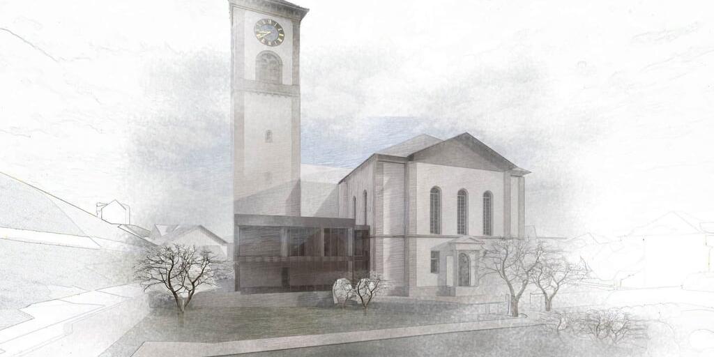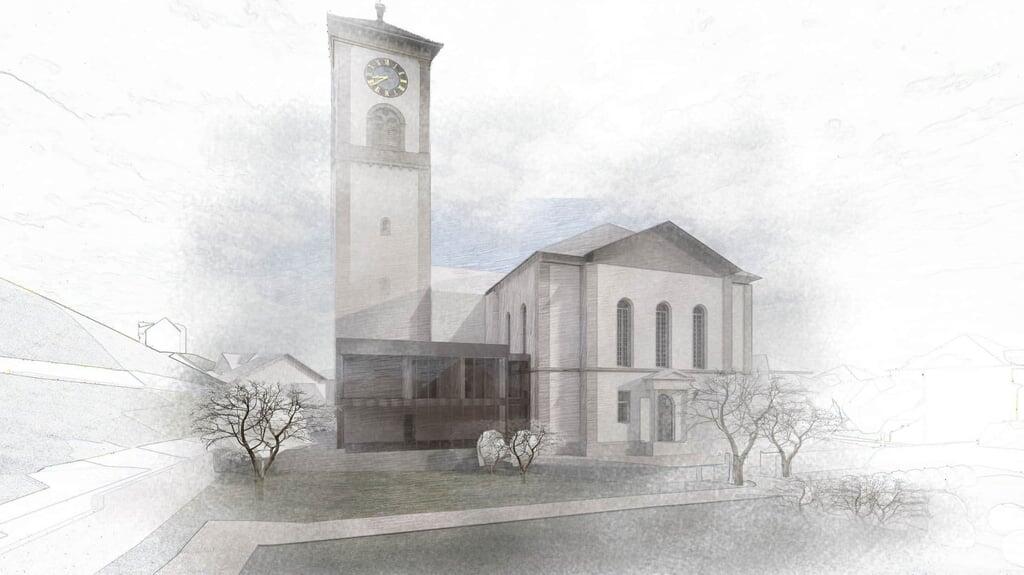 Von der Wilerstrasse her soll der Anbau den Blick auf die Kirche nicht beeinträchtigen. Die Denkmalpflege könne sich einen Anbau vorstellen, wenn sich dieser gut ins Gesamtbild einfüge, hiess es. Die Gestaltung des Anbaus steht noch nicht fest. Die Visualisierung zeigt ein Flachdach. Im Vordergrund stehe eine leichte Bauweise. Wegen des Anbaus fallen Parkplätze weg. Das müsse man noch genauer anschauen, aber Parkplätze seien im Zentrum knapp, sagte Schällibaum. Schliesslich muss der Dachstuhl punktuell verstärkt werden. Die zweite Etappe der bewilligten Dachsanierung wurde deshalb zurückgestellt.
