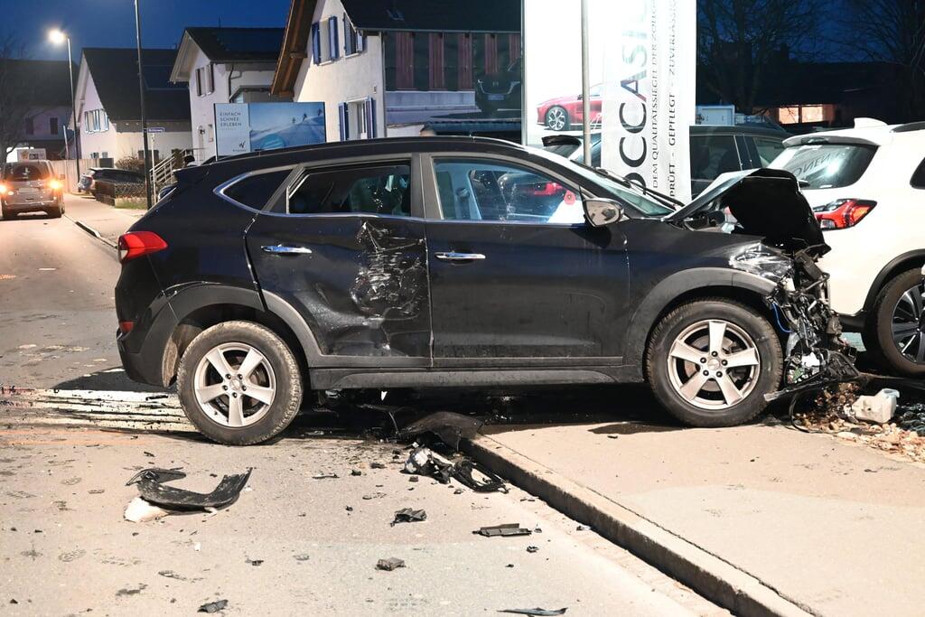 Frontalkollision zwischen zwei Autos – drei parkierte Autos und Scheune beschädigt