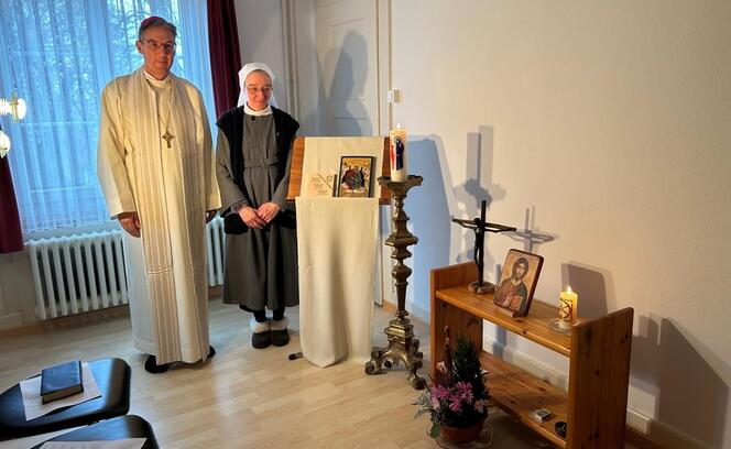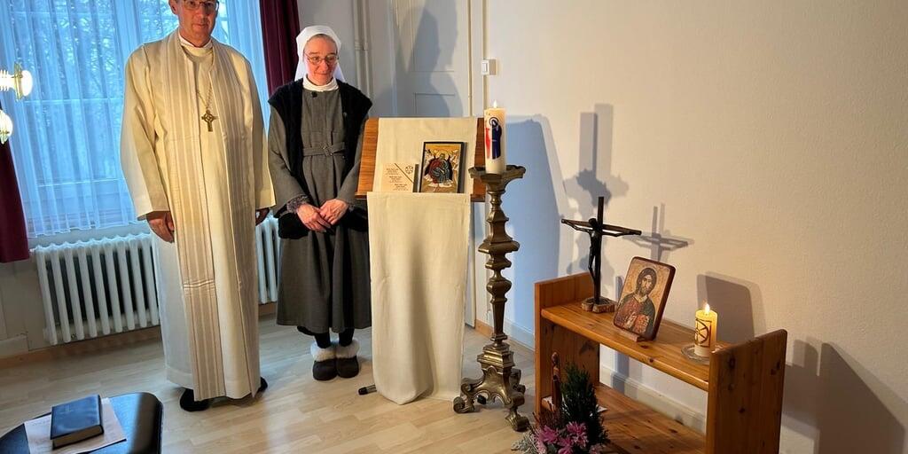 Als Diözesaneremitin lebt Schwester Maria-Amadea ihre Berufung in der Verbindung mit dem Bistum und dem Bischof von St.Gallen. So hat Bischof Beat am Iddafest vom vergangenen Sonntag das Postulatsversprechen von Schwester Maria-Amadea entgegengenommen und ihren Gebetsraum im Pfarrhaus, die Eremo des Heiligen Elias, gesegnet. Damit beginnt für die Schwester ein dreijähriger Weg, in die eremitische Lebensform hineinzuwachsen.