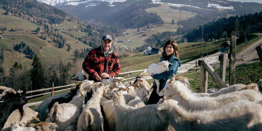 Johannes und Ann-Kathrin Sutter halten auf ihrem Hof in Hemberg über 100 Kaschmirziegen.