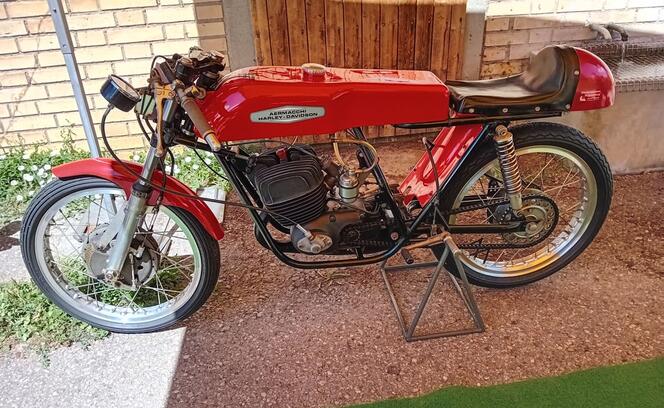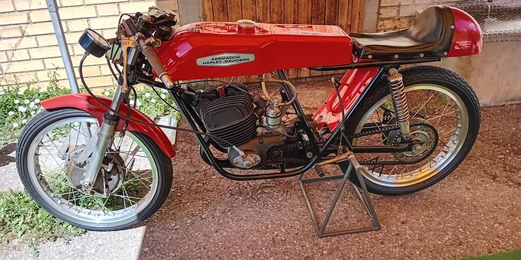 Neben den vielen raren Maschinen ist Johann Hartmann eine absolute Aermacchi-Legende. Er entwickelte und baute die Polyester-Tank-Sitz-Kombinationen, die vorderen und hinteren Kotflügel und die Verkleidungen für den Importeur Yves Liengme. Dazu hat er auch die weltweit einzige Monocoque Aermacchi – made in Toggenburg – gebaut, die er leider nach Holland verkauft hat. Mit seinen Kursen, Holzchüeli selber schnitzen, war Hartmann schon mehrmals bei den lokalen Fernsehstationen zu Gast.