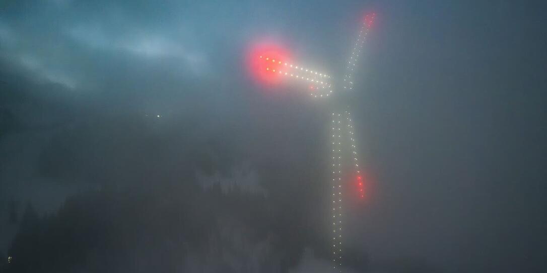 Auf dem Flumserberg visualisieren Drohnen eine geplante Windanlage. (Bild: Gian Ehrenzeller)