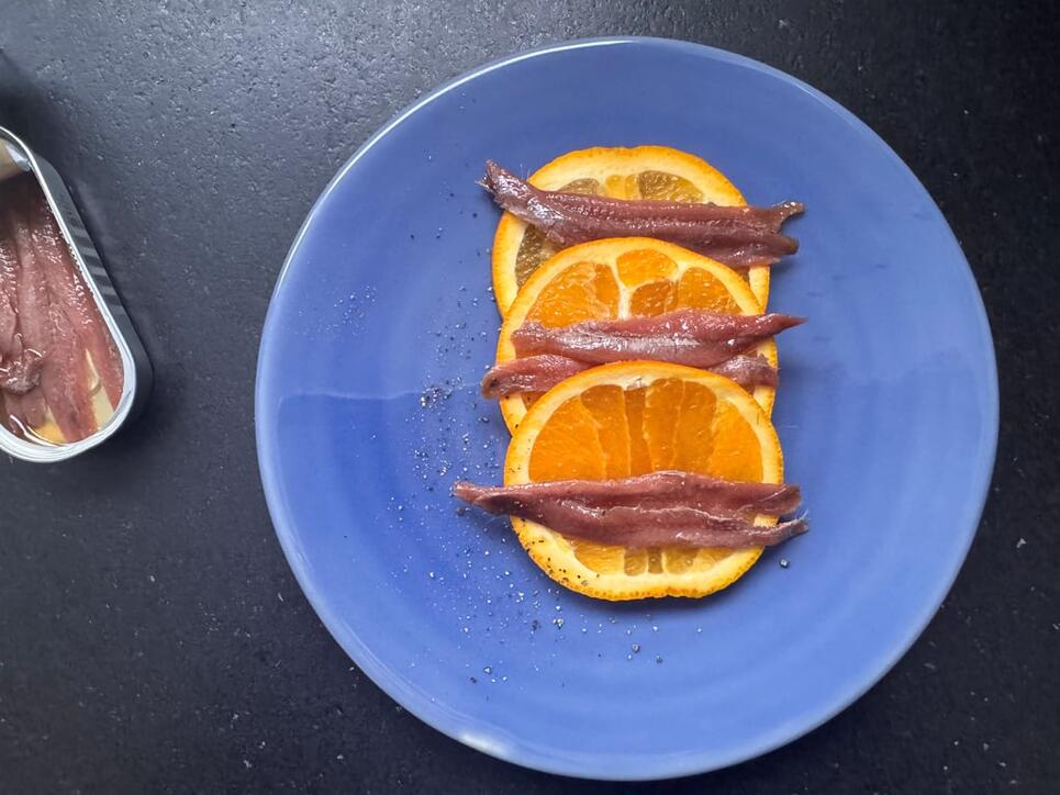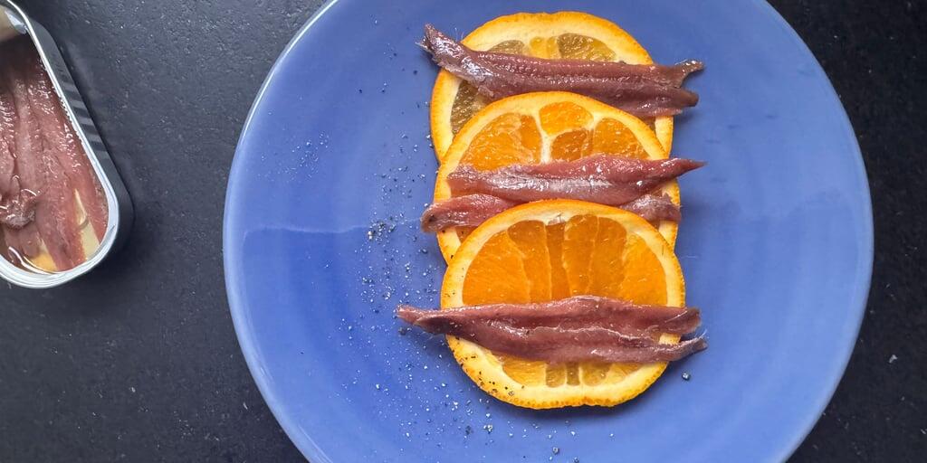 Um Sardellen zu geniessen, genügt manchen eine Scheibe getoastetes Brot. Das Kulinarikmagazin Splendido empfiehlt, Sardellen zusammen mit in dünne Scheiben geschnittenen Orangen zu essen. Eine ausgezeichnete Idee, wie ein Versuch zeigt. Die süsse Frucht und die salzige Sardelle vertragen sich gut.