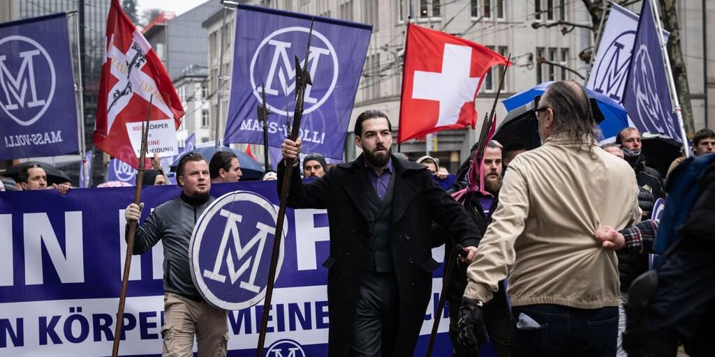 Die «Mass-Voll»-Demonstrierenden weigerten sich, die Hellebarden abzugeben.