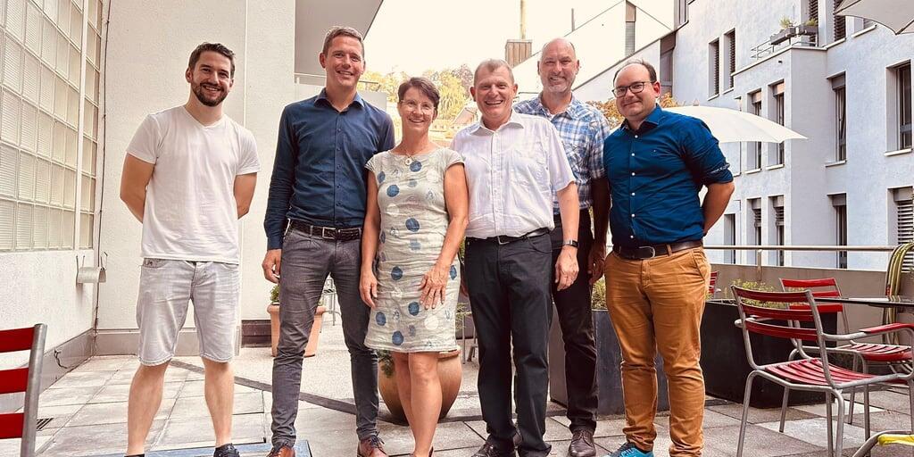 Fröhlich aufgestellt für das Wahlticket der CSP im Sommer 2023: Präsident Felix Bischofberger (3.v.r.), Seite an Seite mit den CSP-Kantonsratsmitgliedern Luzia Krempl-Gnädinger und Thomas Warzinek.