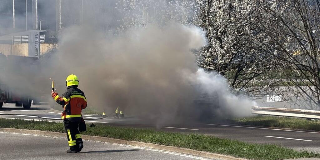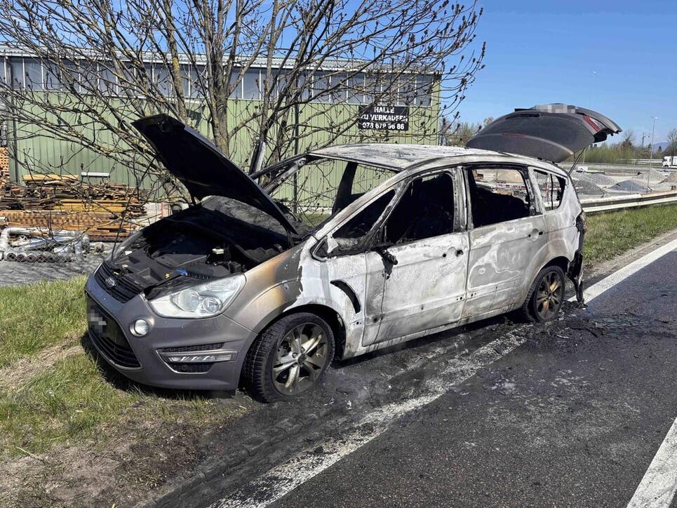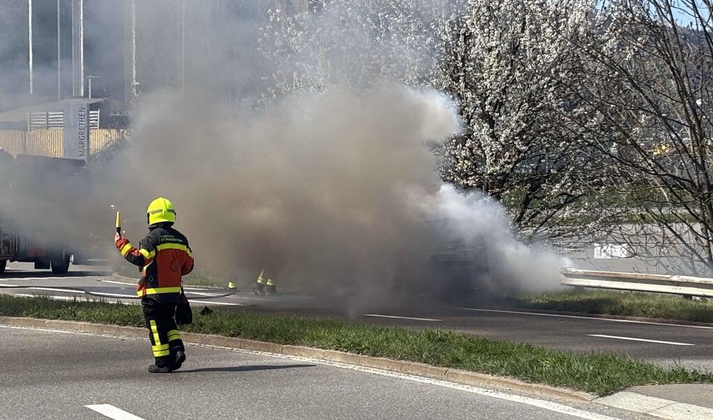 A1-Ausfahrt St.Margrethen: Auto fängt Feuer und brennt komplett aus
