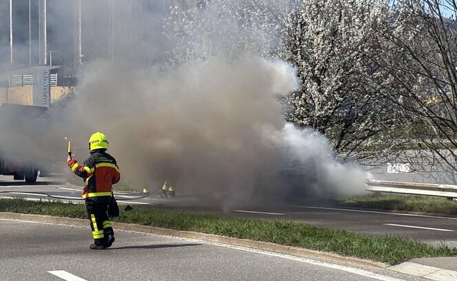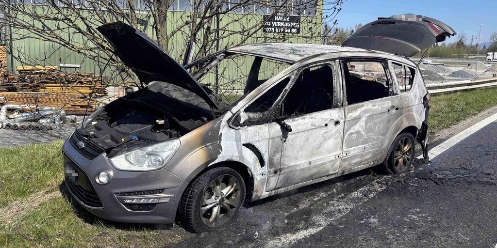 Die 50-Jährige fuhr das Auto sofort ins angrenzende Wiesland und konnte es verlassen. Die zwischenzeitlich über die Notruf- und Einsatzleitzentrale aufgebotene Feuerwehr konnte den Brand löschen. Dennoch ist das Fahrzeug komplett ausgebrannt, heisst es weiter im Communiqué. An Auto und Wiesland entstand Sachschaden von mehreren tausend Franken.