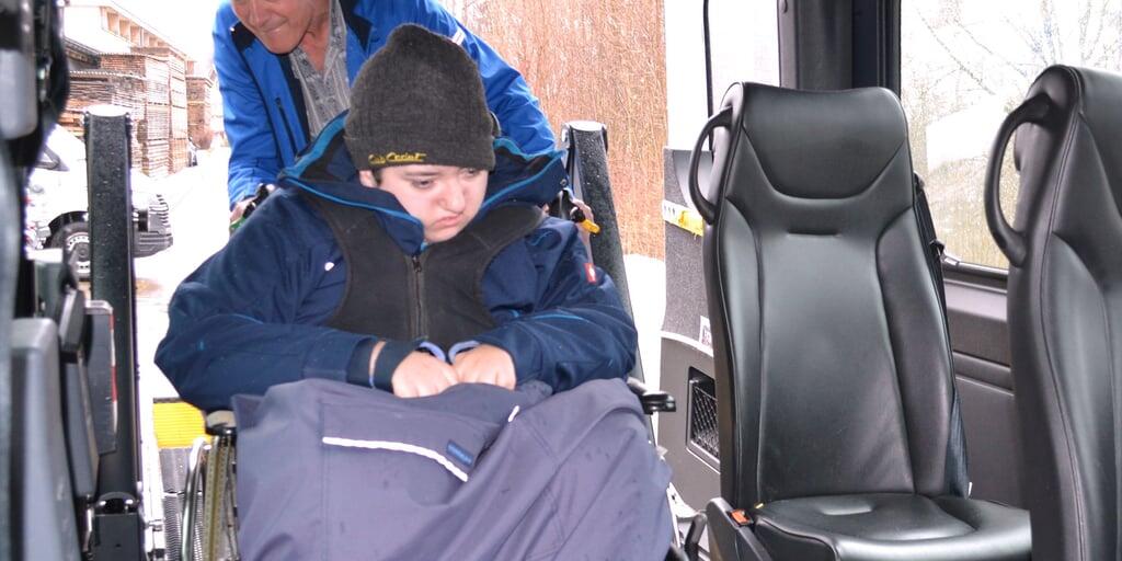 Die genaue Fixation des jungen Fahrgasts im Rollstuhl löst Hansueli Frei routiniert.