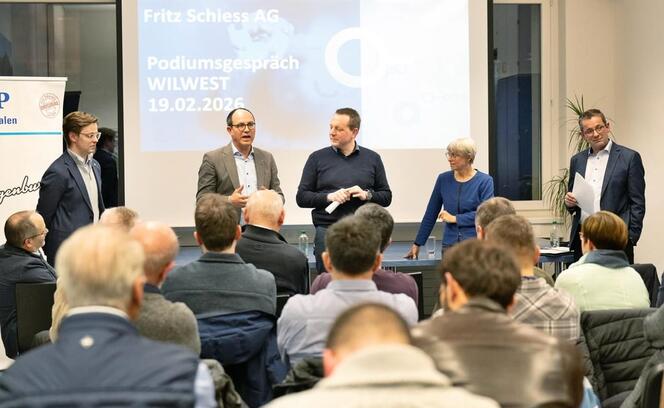 Die FDP Toggenburg veranstaltete am Donnerstag bei der Fritz Schiess AG in Lichtensteig ein Podiumsanlass zur Abstimmungsvorlage Wil West. Das schreibt die Regionalpartei in einer Mitteilung. Nach der Vorstellung der Schiess AG führte Flurin Schmid durch die Podiumsdiskussion zur Abstimmungsvorlage Wil West, über welche das St.Galler Stimmvolk am 8. März abstimmt. Während einer Stunde diskutierten Regierungsrat Marc Mächler, Kantonsrat Ruben Schuler (beide FDP), Kantonsrätin Margot Benz (Grüne) und Kantonsrat Bruno Schweizer (SVP) über die Vorlage.
