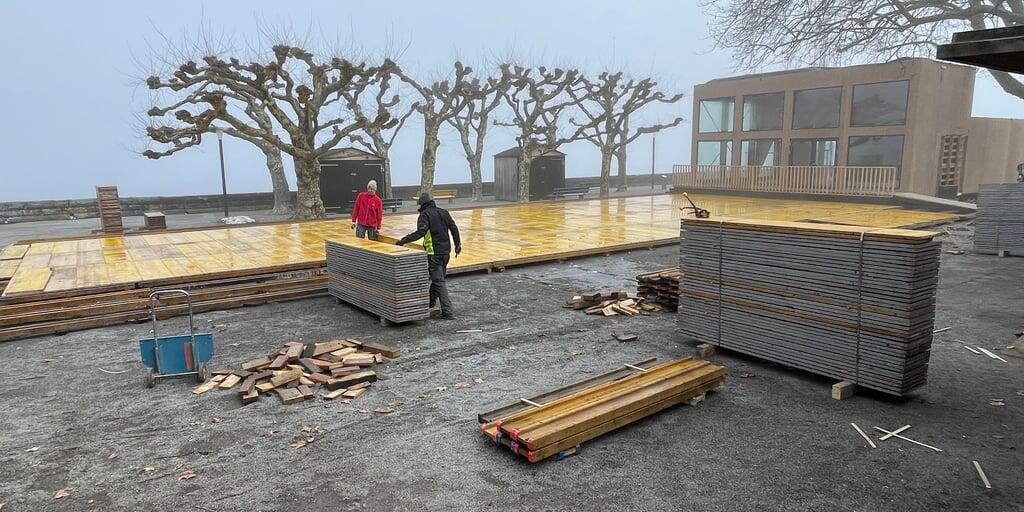 Diese Woche scheint die erste Frühlingswelle in der Ostschweiz angekommen zu sein. In Rorschach ist aber nicht nur der wolkenverhangene Himmel verschwunden: An der Seepromenade wurden bereits die letzten Teile der Eisarena weggepackt. Wo vor wenigen Tagen noch Kinder mit Schlittschuhen über die Eisfläche flitzten, standen am Donnerstag nur noch leere Holzplatten.