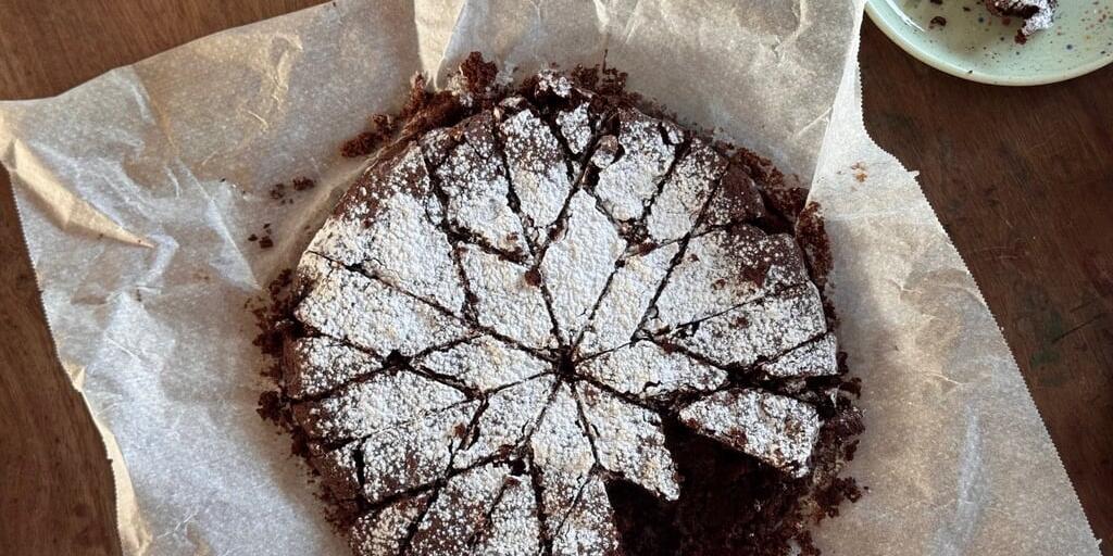Zubereitung: Ofen auf 180 Grad vorheizen. Die Butter mit der gehackten Schokolade im Topf bei niedriger Hitze schmelzen lassen. Immer wieder rühren. Eine Springform einfetten oder mit Backpapier auslegen. Eier mit den beiden Zuckersorten, Vanille und Salz schaumig schlagen. Die Mandeln mit Backpulver und der flüssigen Butter-Schokolade-Mischung unterrühren. Teig in die Form giessen. Kuchen rund 30 Minuten backen und danach 5 Minuten im ausgeschalteten Ofen stehen lassen. Vor dem Anschneiden mindestens 15 Minuten in der Form abkühlen lassen.