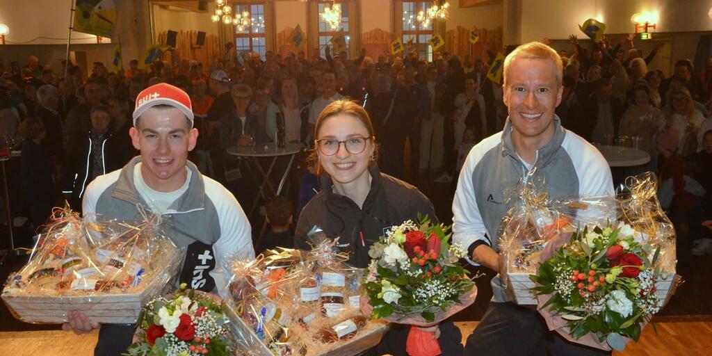 Um die 200 Besucher wollen mit dabei sein und die Sporttalente gebührend feiern. So stehen sie beim Eintreffen der drei Spalier und beklatschen die Sportler mit viel Engagement. Mit genau gleich viel Enthusiasmus und Engagement haben die drei Wintersportler an den Spielen teilgenommen und berichten viel Positives von ihrer Zeit in Italien.