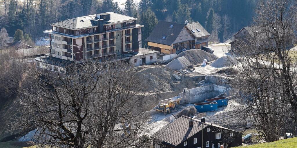 Auch das abgebrannte Hotel Acker war ein Thema an der Versammlung der Zweitwohnungsbesitzer, hier fotografiert im März 2025.